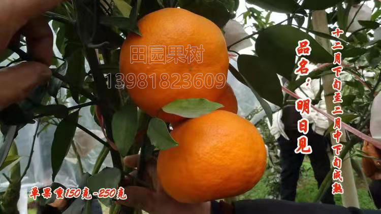 明日見(jiàn):是日本農(nóng)業(yè)技術(shù)中心果樹(shù)試驗(yàn)場(chǎng)興灃分場(chǎng)用興津46號(hào)(甜春橘柚)X特洛維塔和“春見(jiàn)”雜交育成的品種,中國(guó)農(nóng)業(yè)科學(xué)院柑橘研究所于2011年從日本引進(jìn),明日見(jiàn)1作為春見(jiàn)的雜交后代,可以說(shuō)是春見(jiàn)的升級(jí)版,取這個(gè)名字,主要是源于待其成為明日振新柑橘產(chǎn)業(yè)的擔(dān)當(dāng)?shù)囊粋€(gè)新品種,果實(shí)高扁圓形,皮薄光滑,油胞細(xì)小而凸起,果皮深橙色,包著緊,但易剝離,單果重150克左右,大果重250克,橫徑7.4厘米,縱徑5.95厘米,果頂平,有不明顯的印痕,果肉橙色,外種皮較光滑。該品種肉質(zhì)細(xì)嫩化渣,汁多味濃,品質(zhì)十分優(yōu)良,可溶性固形物含量高,12月下旬可溶性固性可以達(dá)到13%,2月中下旬成熟可溶性固形物達(dá)15%,成片種植無(wú)核,混種一般有種子2-5粒,單胚,該品種果皮較厚,但又易剝離,冬季落果少,是值得推廣發(fā)展的高品質(zhì)雜柑品種。