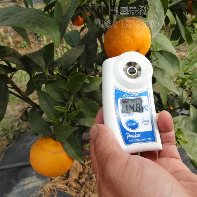 四川省農(nóng)業(yè)科學(xué)院薔果基地(謝仁兵)、成都田園果樹(shù)研究有限公司(方強(qiáng)),沃柑測(cè)糖時(shí)間:2018年3月27日下午17點(diǎn)30分,龍泉驛區(qū)薔果沃柑基地內(nèi),天氣晴朗、陽(yáng)光明媚,氣溫在20-25度左右,微風(fēng),種植沃柑基地土壤為黃壤土,樹(shù)齡兩年,每棵樹(shù)結(jié)果在十五個(gè)至五十個(gè)之間,在基地內(nèi)現(xiàn)場(chǎng)抽樣采摘三個(gè)不同田塊樣品果,現(xiàn)場(chǎng)用水果專(zhuān)業(yè)測(cè)糖儀器,第 一次測(cè)得含糖量(可溶性固物)在14.0度、******次測(cè)得14.5度、第三次測(cè)得14.8度,14.8度為三次含糖量高糖度,沃柑屬于低酸高糖品種。
