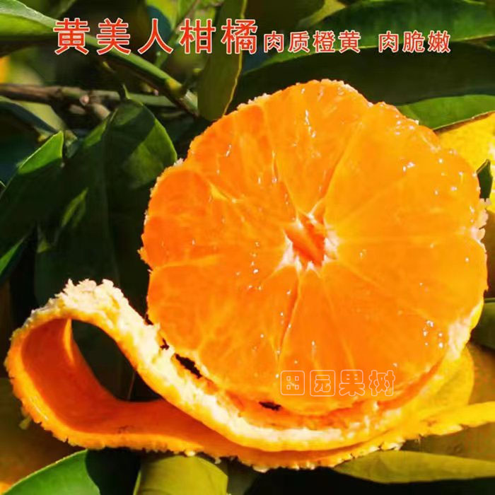 原名"愛媛68號",屬晚熟品種。成都成熟期在1月中旬,2月份-4月份品質(zhì)更佳,留樹掛果期較長,也可留樹至7~8月份,但品質(zhì)會下降,建議銷售采摘時間控制在5、6月份為宜。黃美人果皮光滑,通體黃色,色澤靚麗,底部有個"錢幣"形狀的標(biāo)識;表面油泡小,油胞凸出即為成熟,這點跟紅美人較相似;果皮薄,剝皮易,不浮皮;單果重120~220克;果辨分離,果肉多汁,甜度高,清口香甜汁水四溢,成熟后一般在15%左右,2月份達16%,后期會更高;肉質(zhì)細,脆嫩化渣。