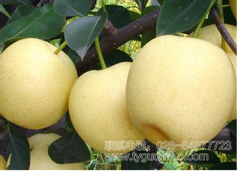 黃金梨:系韓國用新高×二十世紀雜交育成,1981年選出,1984年命名為新品種,2000年冬從省級果樹研究所引入,果實長圓形,單果重500克左右,單果果重可達750克,套袋后果實金黃色,可溶性固形物15%,品質(zhì)極上,8月上中旬成熟,盛產(chǎn)期畝收入上萬元,宜盡快規(guī)模化發(fā)展。