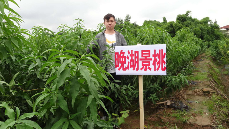晚湖景桃;四川省農業科學院桃研究所在龍泉驛區實驗基地選育而成,晚湖景桃成熟期:7月中下旬。整株平均單果重260克,果重可達600克。縱橫徑7.3*7.4厘米。果形:卵圓形,果頂圓平或微凹。著紅暈,著色40—90%。可溶性固形物13%—18%,平均15%。風味:濃甜,汁液多,有香氣。(屬低酸高糖型)果肉:白里透紅,近核處粉紅色,硬溶質。果核:粘核。梗洼較深。縫合線較淺,果實較對稱,2015年全國桃園藝學會第5屆評比(龍泉),榮獲金獎。綜合評價:糖度極高,品質極上,熟度越高果實越甜。在2015年外貨收購價16元/公斤,供不應求,可作為高糖度的水蜜桃型品種進行******發展。在2017年果商收購價為18元一公斤,供不應求。