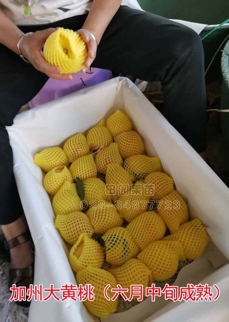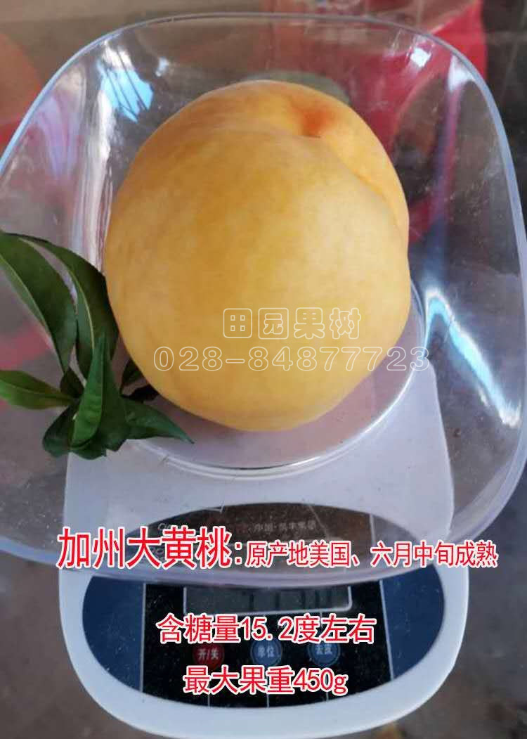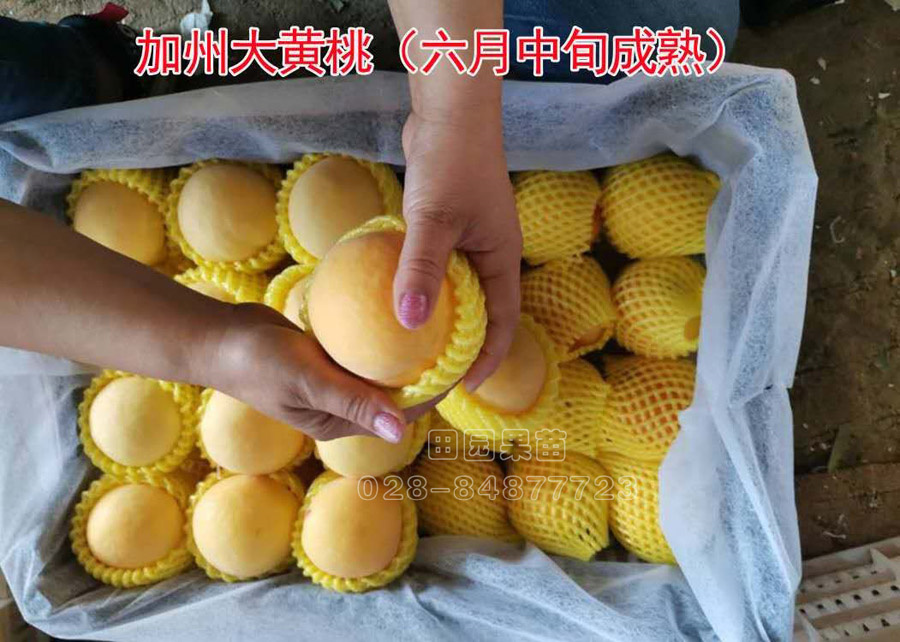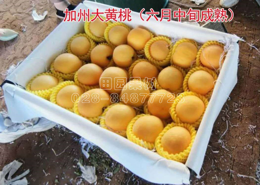 加州黃桃(美國(guó)):高檔鮮食黃桃品種,果實(shí)6月中旬成熟,果個(gè)大,產(chǎn)量高,平均單果重245克,大果重450克,硬溶質(zhì),果實(shí)表面茸毛中等,底色黃,成熟時(shí)不套袋多數(shù)著深紅色,套袋后外觀金黃,果肉黃色,硬溶質(zhì),肉質(zhì)細(xì),汁液中多,風(fēng)味濃甜,近核處有紅色素,可溶性固形物含量15%左右,總糖含量13.6%,總酸含品質(zhì)特優(yōu),黏核,花型大,花粉多,自花結(jié)實(shí),美國(guó)加州黃桃優(yōu)與國(guó)內(nèi)其它黃桃品種,在中國(guó)南北均可栽種,是一個(gè)值得發(fā)展的新型高檔黃桃新品種。