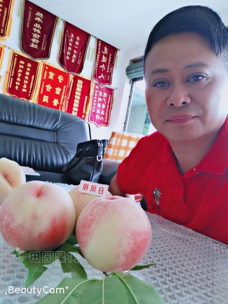 6月中旬成熟,薔薇科,桃屬,果實中大,近圓形,底部稍大,果頂圓,中間稍凹;梗洼深而中廣,縫合線淺。成熟前果面青白色,成熟后陽面鮮紅;皮較薄,