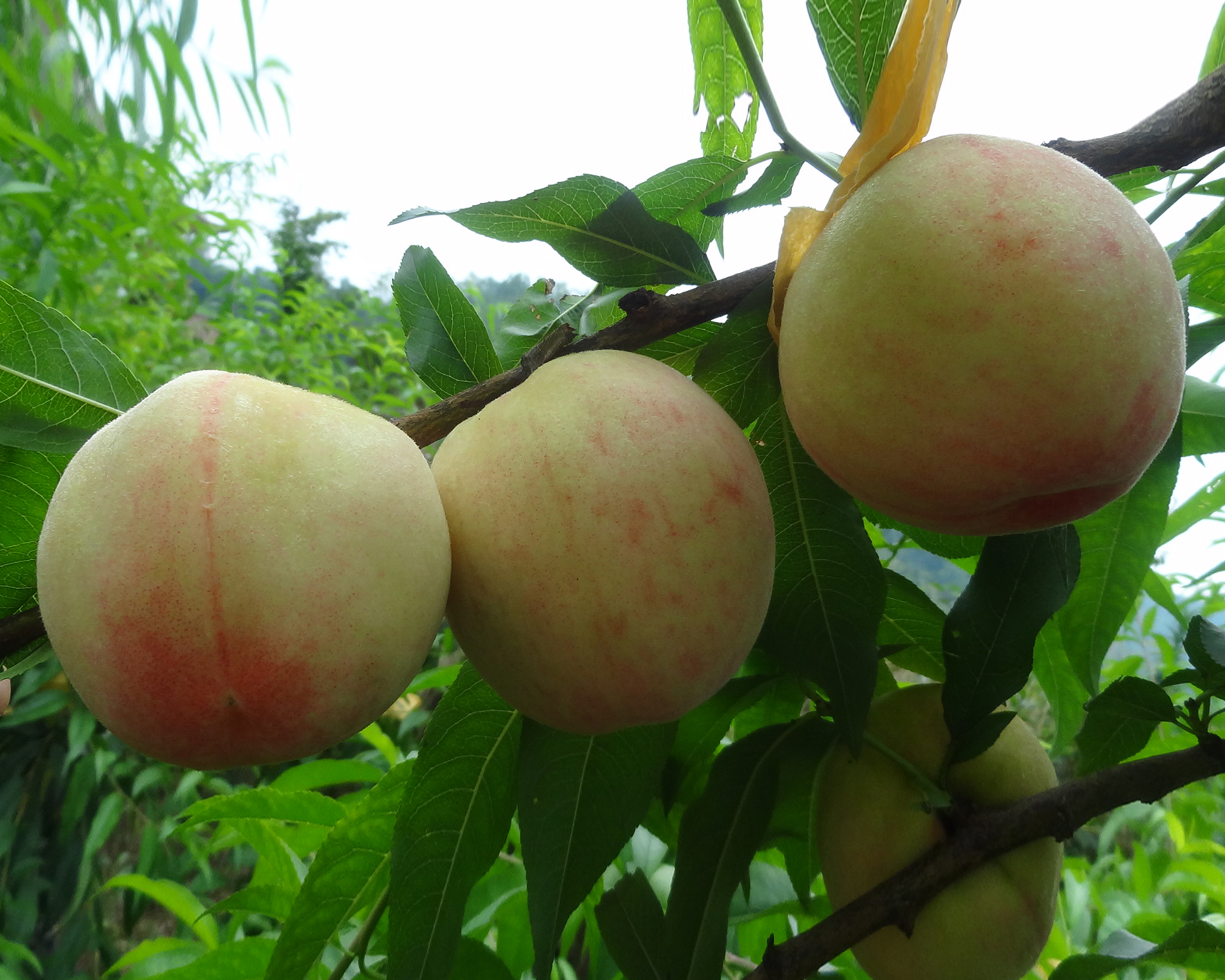 日川白鳳桃:日川白鳳是普通白鳳的芽變,果子成熟期在六月上旬,比普通白鳳提前上市十天左右,成熟單個(gè)重達(dá)300克左右,果形較普通白鳳桃大,色澤白里透紅,肉質(zhì)細(xì)嫩化渣,水分充足,含糖量特高,市場(chǎng)上很少見(jiàn),果園價(jià)在20塊錢一斤,是一個(gè)取代普通白鳳桃優(yōu)良品種,值得發(fā)展。