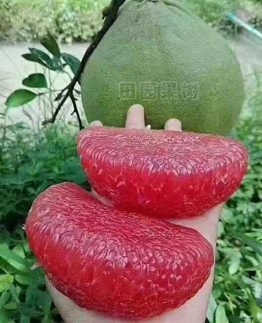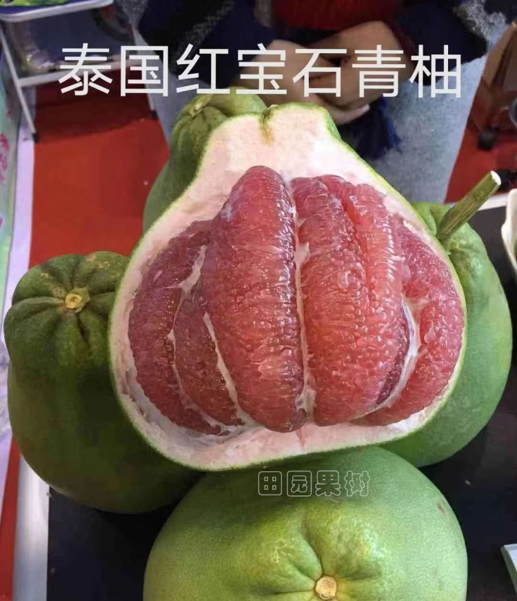 泰國紅寶石青抽完熟時果皮呈青綠色或黃綠色,果蒂向內(nèi)凹陷并帶有褶皺,海綿層粉紅色,果肉紅色、酷似紅寶石、鮮嫩飽滿多汁,入口化渣,有香氣。枝葉有明顯絨毛,果實無核或少核,可食率85%,糖度14-16度,基本無酸味,單果重1250-2000克左右,表皮較粗糙,皮略薄,營養(yǎng)價值高,富含多種營養(yǎng)元素:維生素C、鉀元素、葉酸,果肉中還含有胰島素成分和果膠等。因其極為珍貴,被(泰國國家珍貴經(jīng)濟作物)保護物種,我國于2017年引進該品種,目前在海南、廣西、云南、四川等地開始批量種植。